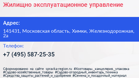 Жилищно-эксплуатационное управление по адресу 141431, Московская область, Химки, Железнодорожная, 2а в дальнейшем Организация, размещена в следующих категориях: