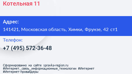 Котельная №11 по адресу 141421, Московская область, Химки, Фрунзе, 42 ст1 в дальнейшем Организация, размещена в следующих категориях: