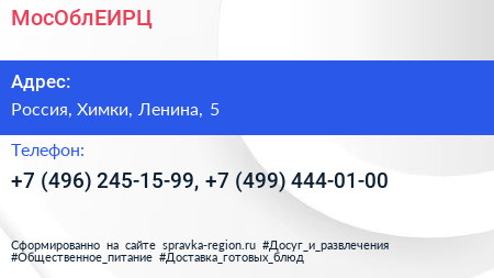 МосОблЕИРЦ по адресу Многофункциональный центр предоставления государственных и муниципальных услуг города Лобня, Железнодорожная улица, Москвич, Южный, Лобня, Московская область, Центральный федеральный округ, 141730, Россия в дальнейшем Организация, размещена в следующих категориях: