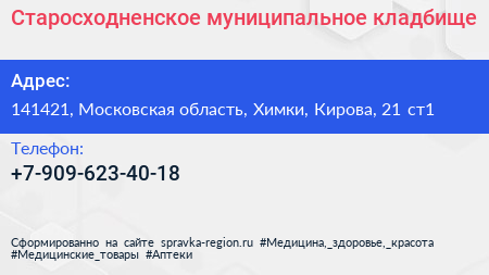 Старосходненское муниципальное кладбище по адресу 141421, Московская область, Химки, Кирова, 21 ст1 в дальнейшем Организация, размещена в следующих категориях: