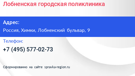 Лобненская городская поликлиника по адресу Лобненская поликлиника, отделение "Катюшки", 9, Лобненский бульвар, Москвич, Катюшки, Лобня, Московская область, Центральный федеральный округ, 141736, Россия в дальнейшем Организация, размещена в следующих категориях: