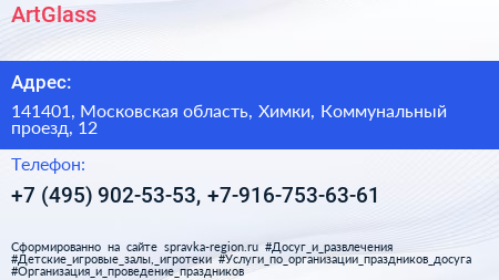 ArtGlass по адресу 141401, Московская область, Химки, Коммунальный проезд, 12 в дальнейшем Организация, размещена в следующих категориях: