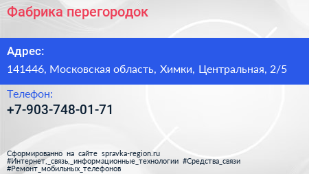 Фабрика перегородок по адресу 141446, Московская область, Химки, Центральная, 2/5 в дальнейшем Организация, размещена в следующих категориях: