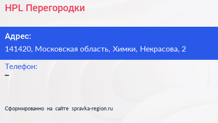 HPL Перегородки по адресу 141420, Московская область, Химки, Некрасова, 2 в дальнейшем Организация, размещена в следующих категориях: