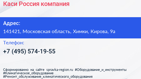 Каси Россия, компания по адресу 141421, Московская область, Химки, Кирова, 9а в дальнейшем Организация, размещена в следующих категориях: