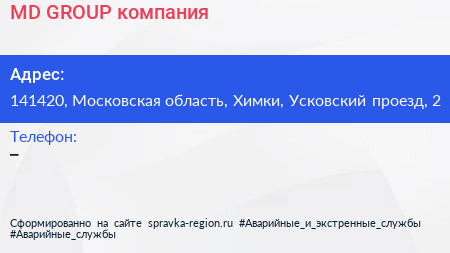 MD GROUP, компания по адресу 141420, Московская область, Химки, Усковский проезд, 2 в дальнейшем Организация, размещена в следующих категориях: