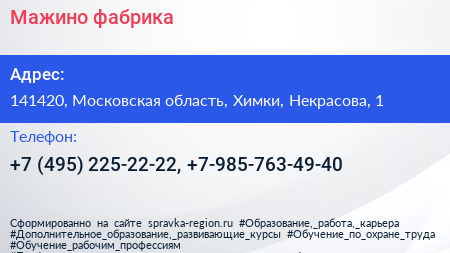 Мажино, фабрика по адресу 141420, Московская область, Химки, Некрасова, 1 в дальнейшем Организация, размещена в следующих категориях: