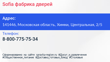 Sofia, фабрика дверей по адресу 141446, Московская область, Химки, Центральная, 2/5 в дальнейшем Организация, размещена в следующих категориях: