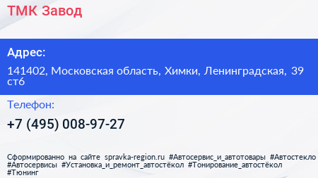 ТМК Завод по адресу 141402, Московская область, Химки, Ленинградская, 39 ст6 в дальнейшем Организация, размещена в следующих категориях: