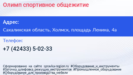 Олимп, спортивное общежитие по адресу Сахалинская область, Холмск, площадь Ленина, 4а в дальнейшем Организация, размещена в следующих категориях: