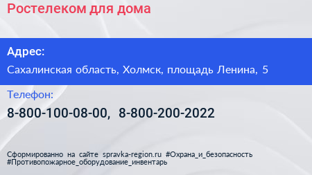 Ростелеком для дома по адресу Сахалинская область, Холмск, площадь Ленина, 5 в дальнейшем Организация, размещена в следующих категориях: