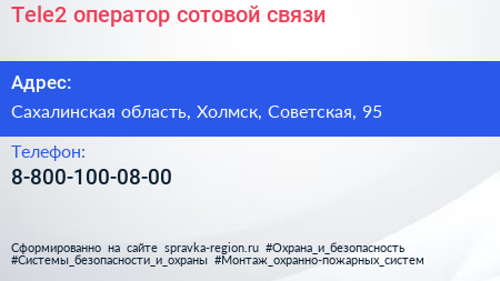 Tele2, оператор сотовой связи по адресу Сахалинская область, Холмск, Советская, 95 в дальнейшем Организация, размещена в следующих категориях: