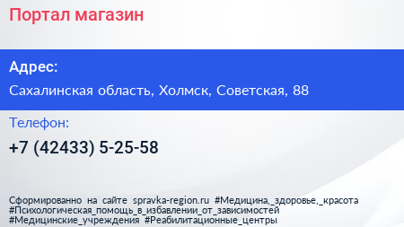 Портал, магазин по адресу Сахалинская область, Холмск, Советская, 88 в дальнейшем Организация, размещена в следующих категориях: