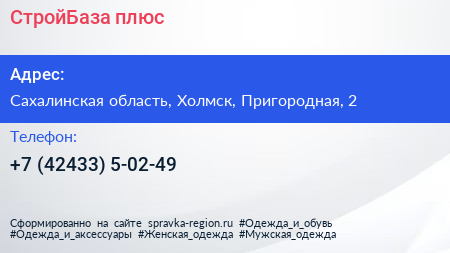 СтройБаза плюс по адресу Сахалинская область, Холмск, Пригородная, 2 в дальнейшем Организация, размещена в следующих категориях:
