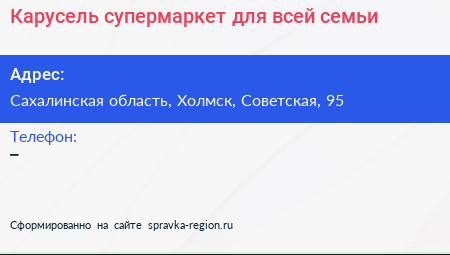 Карусель, супермаркет для всей семьи по адресу Сахалинская область, Холмск, Советская, 95 в дальнейшем Организация, размещена в следующих категориях: