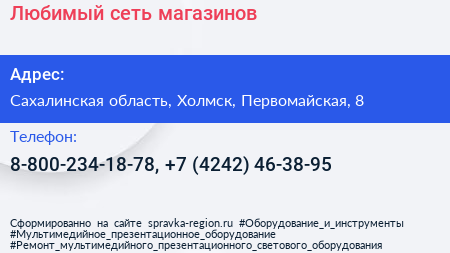 Любимый, сеть магазинов по адресу Сахалинская область, Холмск, Первомайская, 8 в дальнейшем Организация, размещена в следующих категориях: