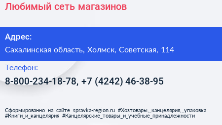 Любимый, сеть магазинов по адресу Сахалинская область, Холмск, Советская, 114 в дальнейшем Организация, размещена в следующих категориях: