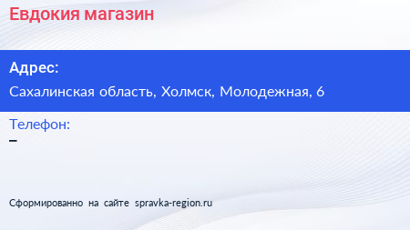 Евдокия, магазин по адресу Сахалинская область, Холмск, Молодежная, 6 в дальнейшем Организация, размещена в следующих категориях: