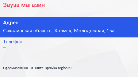 Зауза, магазин по адресу Сахалинская область, Холмск, Молодежная, 15а в дальнейшем Организация, размещена в следующих категориях: