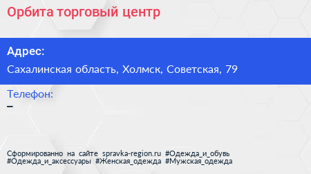 Орбита, торговый центр по адресу Сахалинская область, Холмск, Советская, 79 в дальнейшем Организация, размещена в следующих категориях: