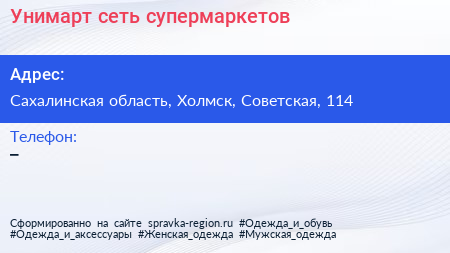 Унимарт, сеть супермаркетов по адресу Сахалинская область, Холмск, Советская, 114 в дальнейшем Организация, размещена в следующих категориях: