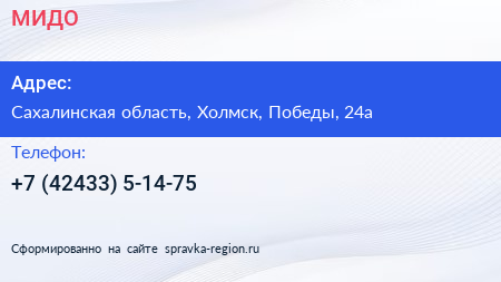 МИДО по адресу Сахалинская область, Холмск, Победы, 24а в дальнейшем Организация, размещена в следующих категориях:
