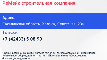 РеМейк, строительная компания по адресу Сахалинская область, Холмск, Советская, 93а в дальнейшем Организация, размещена в следующих категориях:
