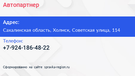 Автопартнер+ по адресу Сахалинская область, Холмск, Советская улица, 114 в дальнейшем Организация, размещена в следующих категориях:
