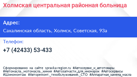 Холмская центральная районная больница по адресу Сахалинская область, Холмск, Советская, 93а в дальнейшем Организация, размещена в следующих категориях:
