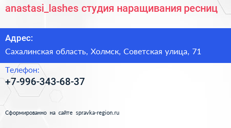 anastasi_lashes, студия наращивания ресниц по адресу Сахалинская область, Холмск, Советская улица, 71 в дальнейшем Организация, размещена в следующих категориях: