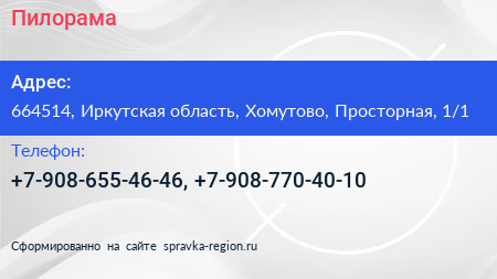 Пилорама по адресу 664514, Иркутская область, Хомутово, Просторная, 1/1 в дальнейшем Организация, размещена в следующих категориях: