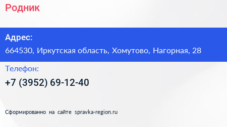 Адрес: Иркутская область, Хомутово, Нагорная, 28