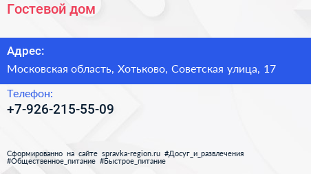 Гостевой дом по адресу Московская область, Хотьково, Советская улица, 17 в дальнейшем Организация, размещена в следующих категориях: