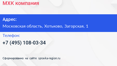 МХК, компания по адресу Московская область, Хотьково, Загорская, 1 в дальнейшем Организация, размещена в следующих категориях: