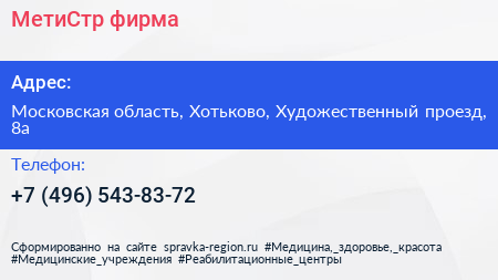 МетиСтр, фирма по адресу Московская область, Хотьково, Художественный проезд, 8а в дальнейшем Организация, размещена в следующих категориях: