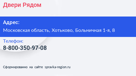 Двери Рядом по адресу Московская область, Хотьково, Больничная 1-я, 8 в дальнейшем Организация, размещена в следующих категориях: