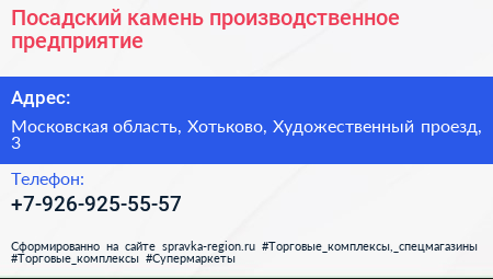 Посадский камень, производственное предприятие по адресу Московская область, Хотьково, Художественный проезд, 3 в дальнейшем Организация, размещена в следующих категориях: