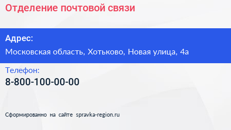 Отделение почтовой связи по адресу Московская область, Хотьково, Новая улица, 4а в дальнейшем Организация, размещена в следующих категориях: