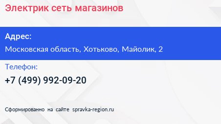 Электрик, сеть магазинов по адресу Московская область, Хотьково, Майолик, 2 в дальнейшем Организация, размещена в следующих категориях: