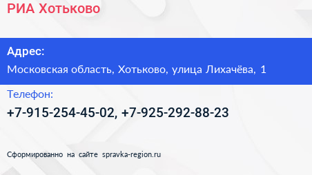 РИА Хотьково по адресу Московская область, Хотьково, улица Лихачёва, 1 в дальнейшем Организация, размещена в следующих категориях: