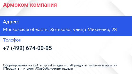 Армоком, компания по адресу Московская область, Хотьково, улица Михеенко, 28 в дальнейшем Организация, размещена в следующих категориях:
