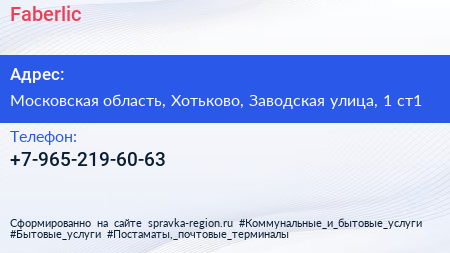 Faberlic по адресу Московская область, Хотьково, Заводская улица, 1 ст1 в дальнейшем Организация, размещена в следующих категориях: