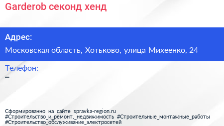 Garderob, секонд-хенд по адресу Московская область, Хотьково, улица Михеенко, 24 в дальнейшем Организация, размещена в следующих категориях: