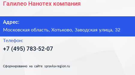 Галилео Нанотех, компания по адресу Московская область, Хотьково, Заводская улица, 32 в дальнейшем Организация, размещена в следующих категориях: