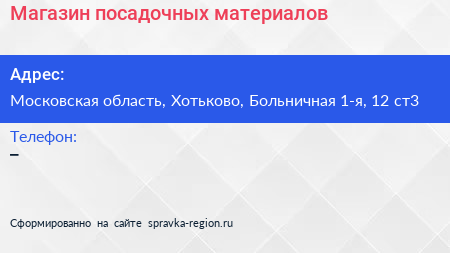 Магазин посадочных материалов по адресу Московская область, Хотьково, Больничная 1-я, 12 ст3 в дальнейшем Организация, размещена в следующих категориях: