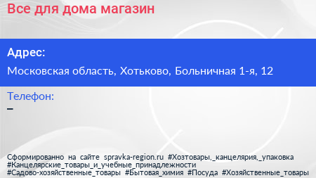 Все для дома, магазин по адресу Московская область, Хотьково, Больничная 1-я, 12 в дальнейшем Организация, размещена в следующих категориях: