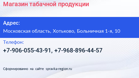 Магазин табачной продукции по адресу Московская область, Хотьково, Больничная 1-я, 10 в дальнейшем Организация, размещена в следующих категориях: