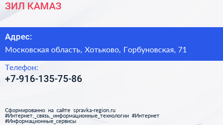 ЗИЛ & КАМАЗ по адресу Московская область, Хотьково, Горбуновская, 71 в дальнейшем Организация, размещена в следующих категориях: