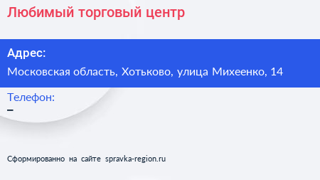 Любимый, торговый центр по адресу Московская область, Хотьково, улица Михеенко, 14 в дальнейшем Организация, размещена в следующих категориях: