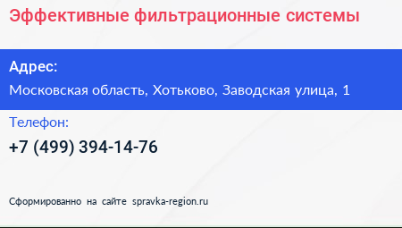 Эффективные фильтрационные системы по адресу Московская область, Хотьково, Заводская улица, 1 в дальнейшем Организация, размещена в следующих категориях: